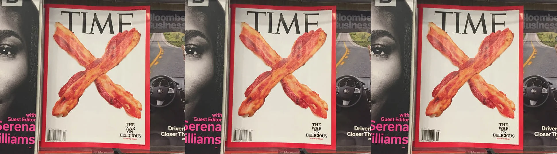 So my usual airport routine includes grabbing a bottle of water, some fruit and staring at the magazine stands. I started, in this instance, far left – all the women’s magazines. With nothing of interest, I panned to center – all the cooking and health magazines – waning interest. The selections were disappointing, but I continued panning to the business and weekly magazines and that’s when Time Magazine, of all magazines, caught my eye and made me laugh out loud. The cover image of two pieces of bacon in an X with the headline, ‘The War on Delicious’ was an absolute surprise and delight. I envy the writers and creative directors who worked on the cover and headline, I would have been giggling to myself all week. Amazing. Bravo, Time Magazine, thank you for providing a moment of airport levity. No matter what side of the issue you stand on, whether you think the article delivered or not, I don’t think it too soon to call it – best cover of the year.